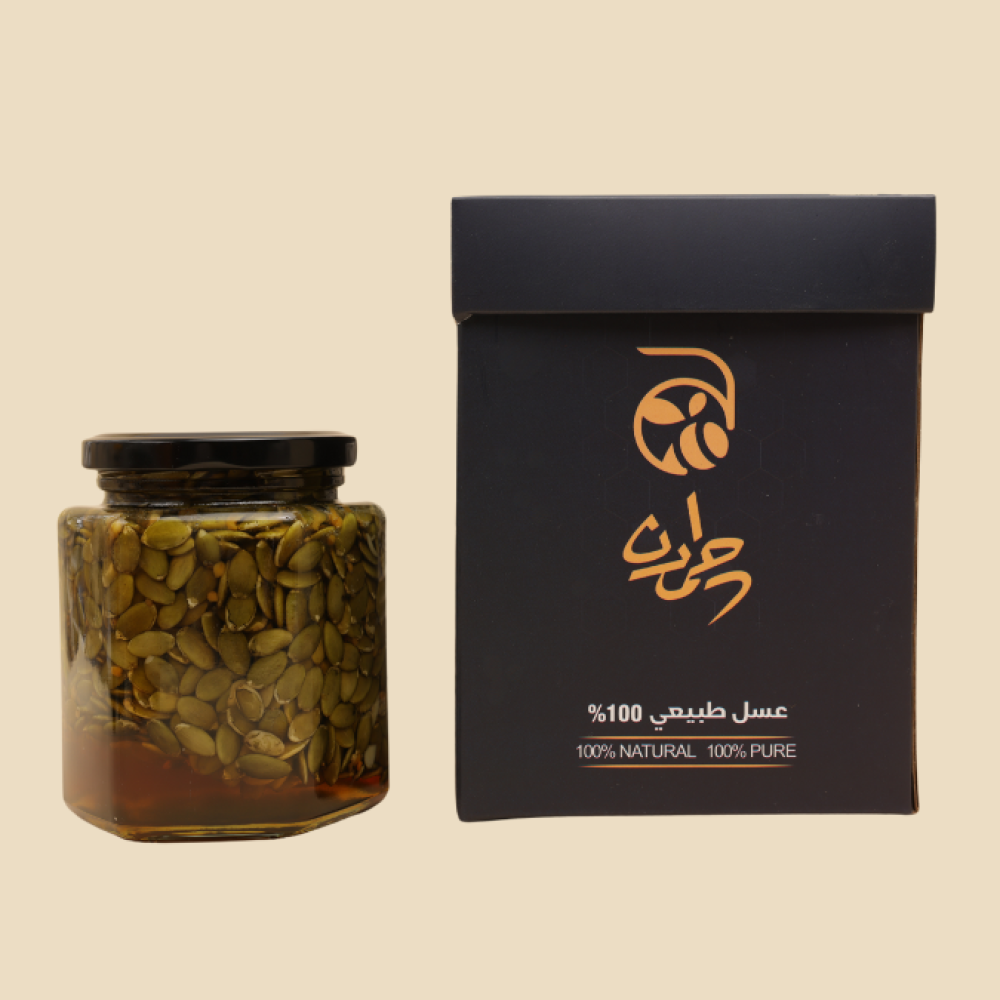 عسل نصف كيلو السدر بمزيج غذاء الملكات وحبوب القرع وحبوب اللقاح